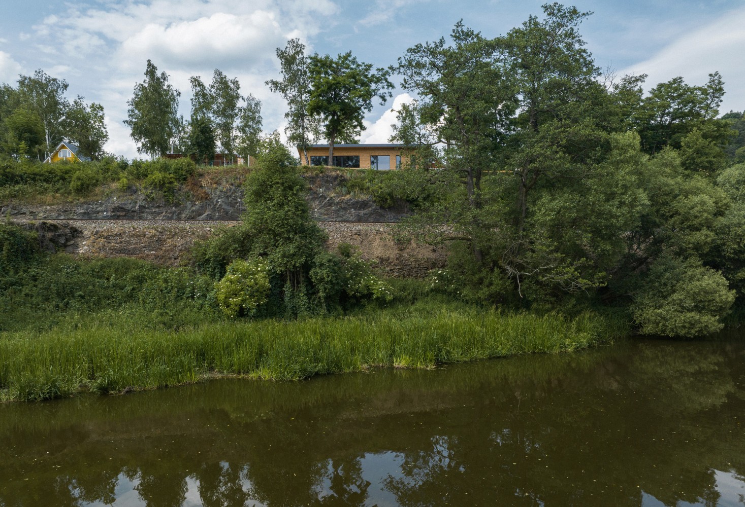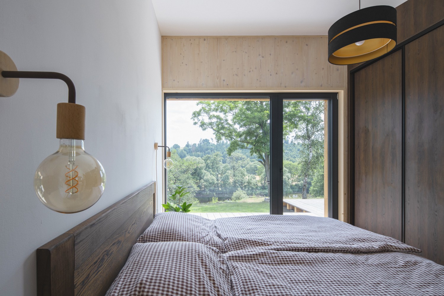 Víkendový dům u řeky – dřevostavba jako útočiště před městem