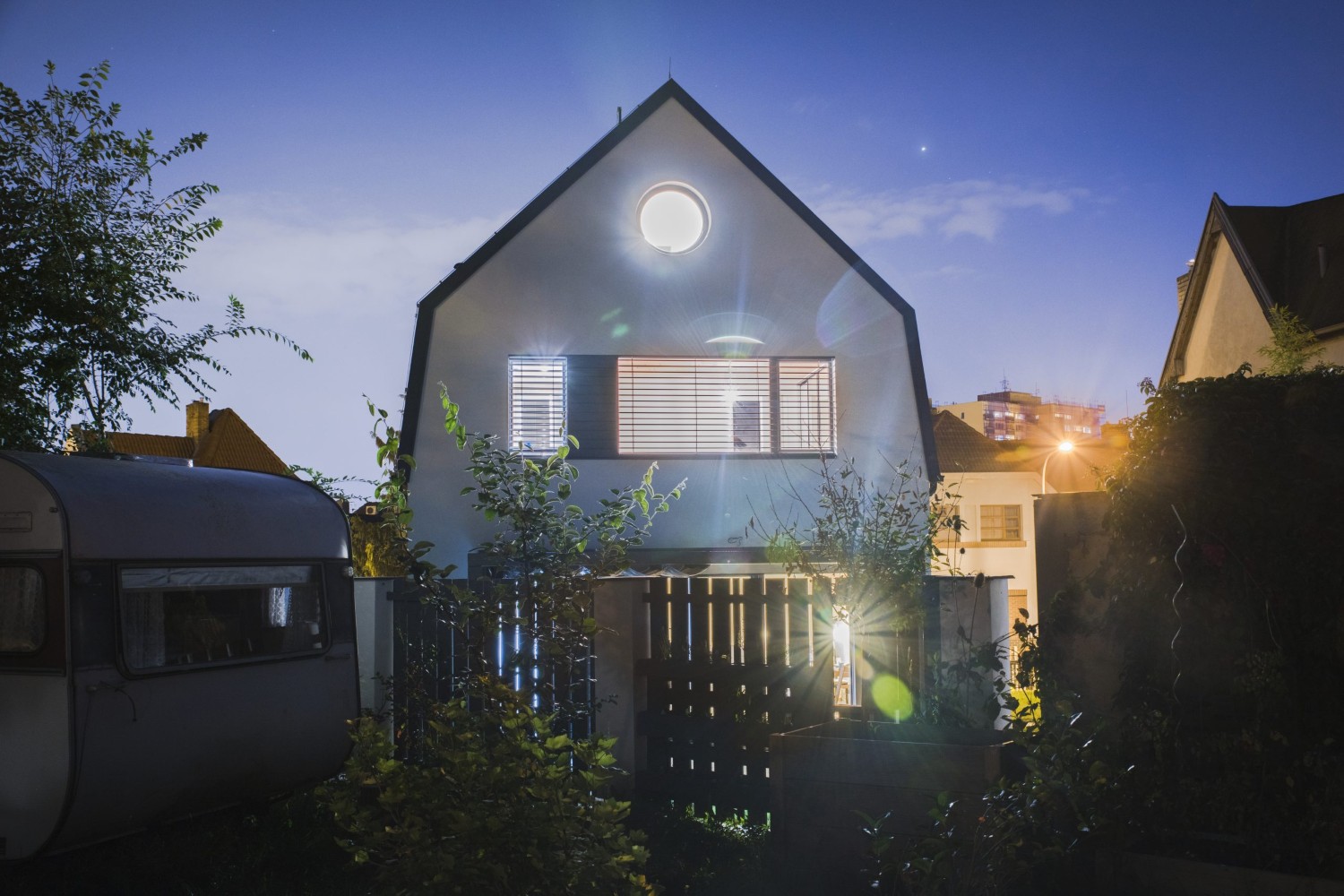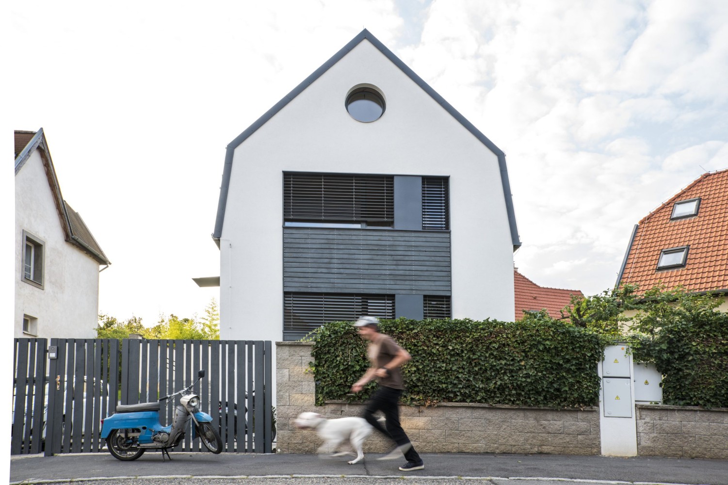 Autorem návrhu je architekt Marek Pavlas, se kterým dlouhodobě spolupracujeme. Tentokrát navrhoval dům pro své sourozence. Na malém pozemku v husté zástavbě Prahy. Projekt vyžadoval přesnost, kreativitu a respekt k náročným pražským regulacím. Marek využil mansardovou střechu a podkroví, díky čemuž vytvořil plnohodnotný obytný prostor na omezené ploše. Výsledkem je dům o čtyřech podlažích a 150 m² užitné plochy, který přesto působí kompaktně a přirozeně.