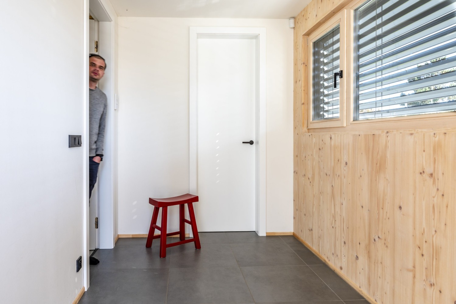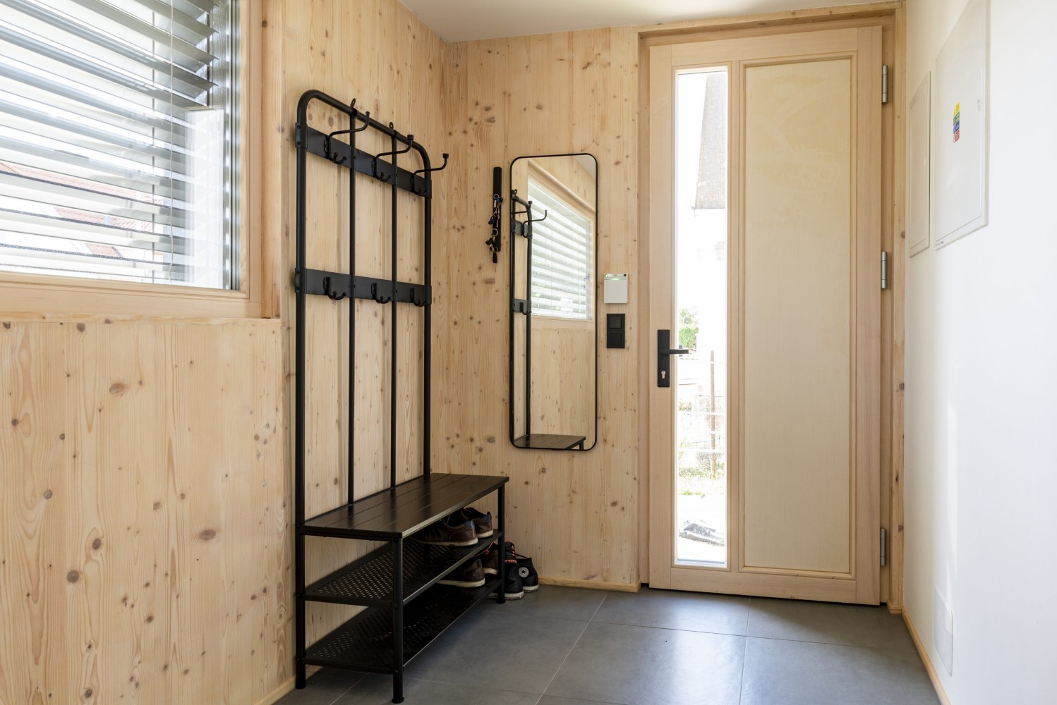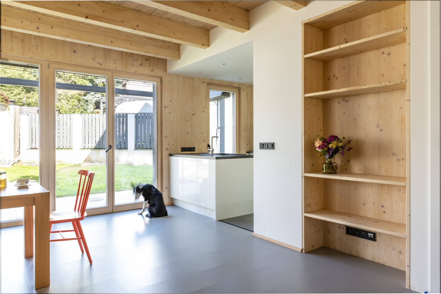 Na zastavěné ploše pouhých 63 m² se podařilo vytvořit funkční, prostorný a světlý dům, který nabízí dostatek místa pro rodinný život. I přes rozlohu pozemku 332 m² zůstala zachována zahrada s prostorem pro odpočinek, hry i venkovní stolování. Tento projekt je příkladem, že i moderní dřevostavba v městském prostředí může spojit úspornost, promyšlený návrh a architektonickou kvalitu.